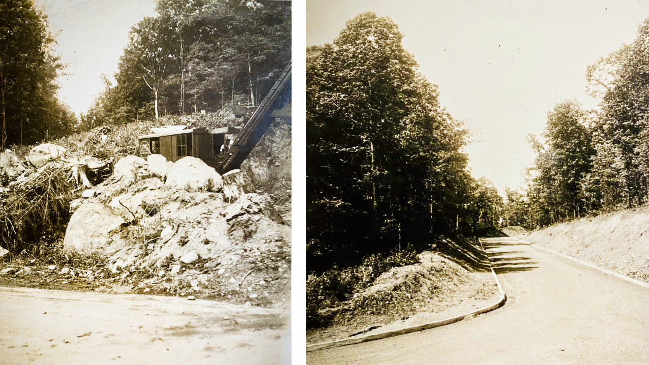 The photographs on this page show the portion of Washington Avenue where it crosses Van Emburgh Avenue and goes up the hill toward Ho-Ho-Kus. Van Emburgh, shown in the foreground, had already existed for many years, the path being an old farm lane named for one of the region’s founding families. That portion of Washington Avenue, on the other hand, was essentially an impassable wilderness.
