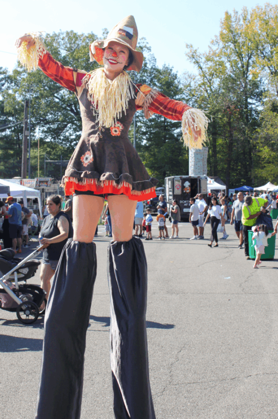 Towering above it all was a strolling scarecrow stiltwalker, delighting kids with high-fives.