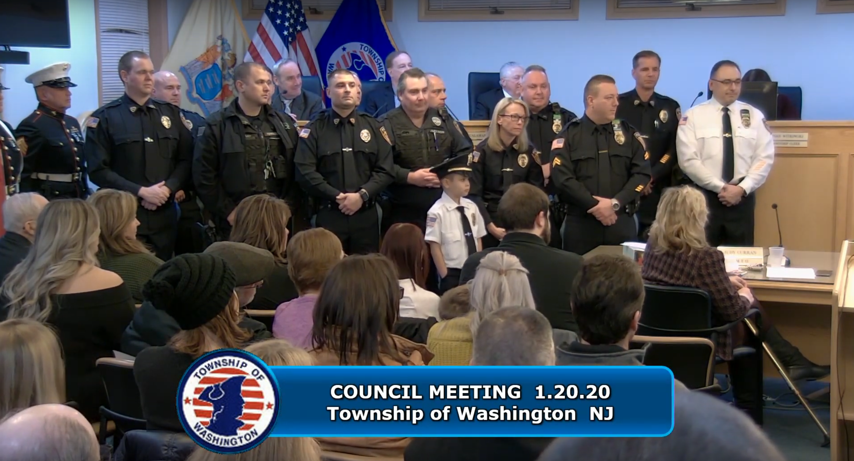 TOWNSHIP OF WASHINGTON, NJ.—Family and friends filled and spilled out of Council Chambers on Jan. 20, there to cheer on Chief of Police Richard Skinner and Captain of Police John Calamari at their ceremonial swearings in.