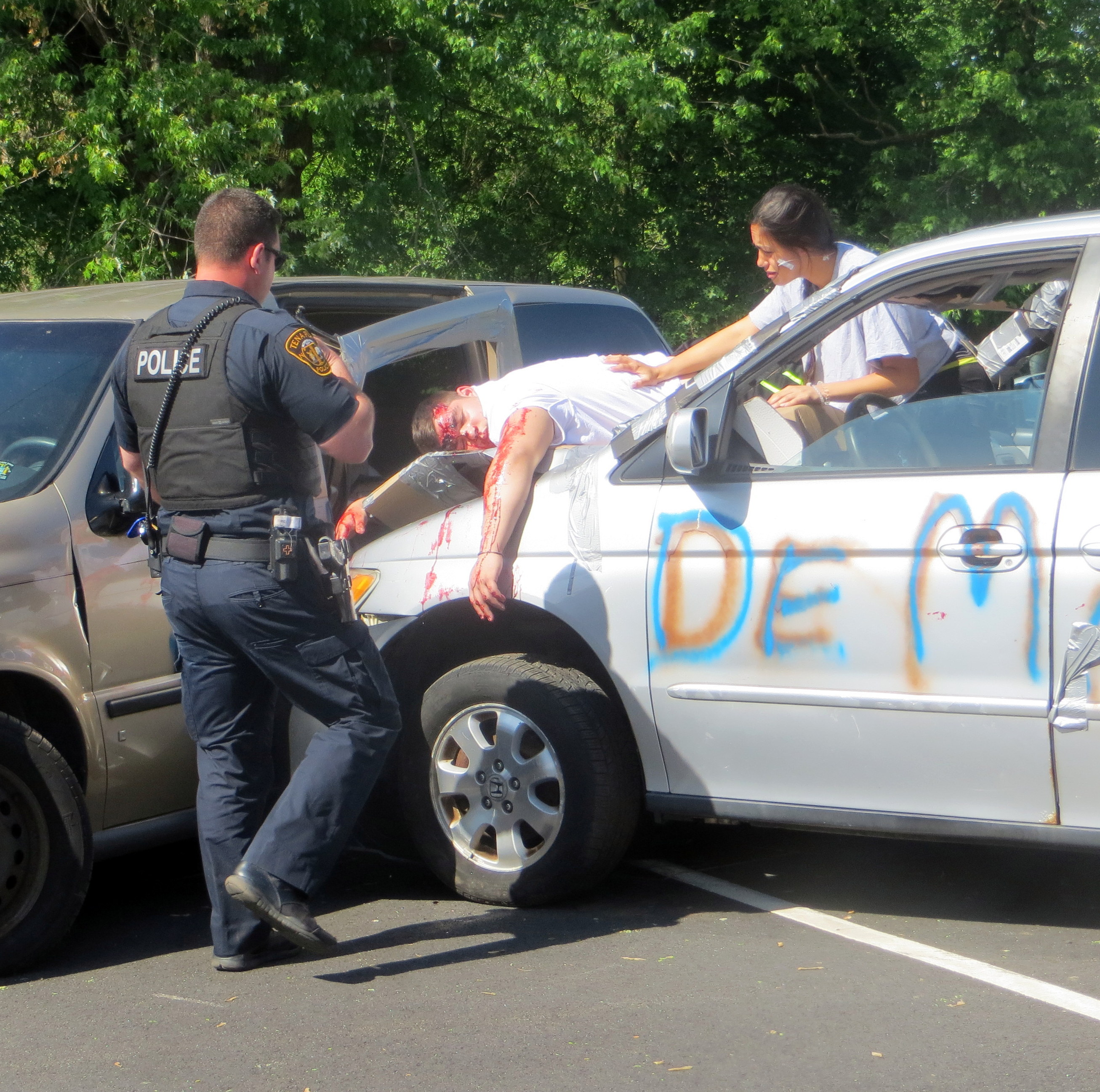 TENAFLY, N.J.—On May 22, Tenafly High School (THS) juniors and seniors witnessed a hair-raising scenario demonstrating the dangers of drunk and distracted driving.