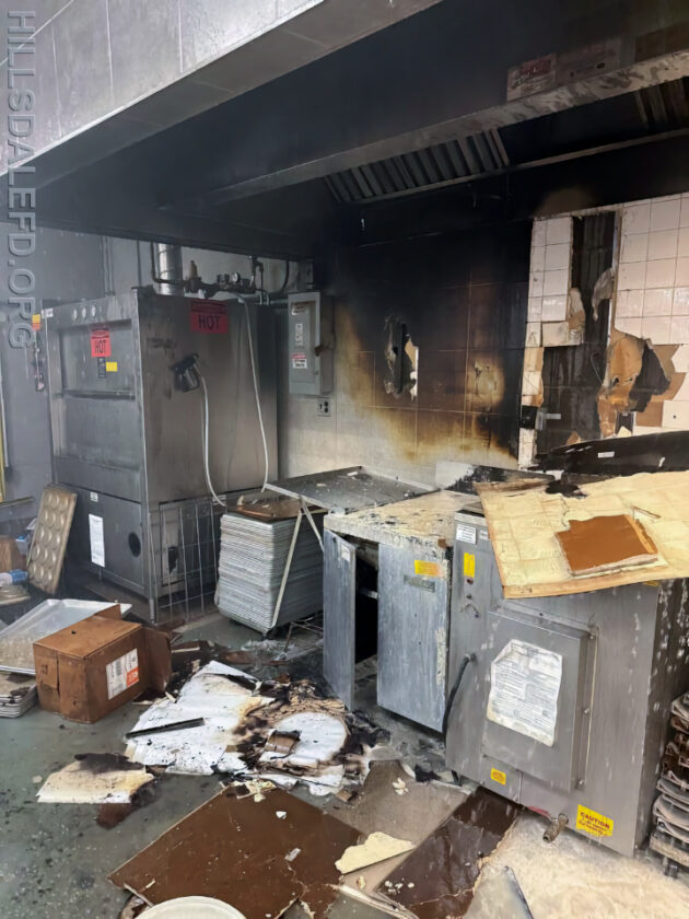 Hillsdale 27 Car 2 arrived shortly after dispatch and confirmed an active fire being held in check by the sprinkler system. The crew from 27 Engine 1 established a water supply and stretched a 2.5-inch line into the building. Firefighters quickly knocked down the blaze and confirmed no extension beyond the immediate contents and hood system.