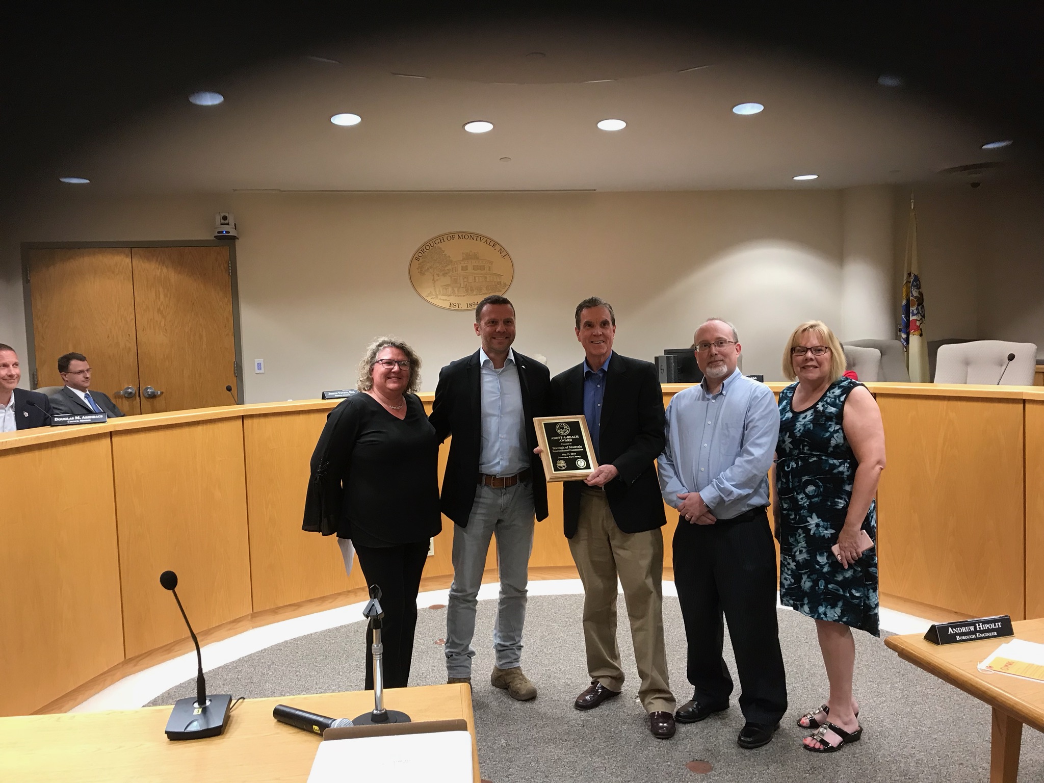 A ceremony Aug. 13 honoring Montvale’s Environmental Commission for its recent receipt of 2019’s Adopt a Beach Award from the state Department of Environmental Protection drew applause and chuckles as the commission chair explained why Montvale won such an award, sans a local beach.
