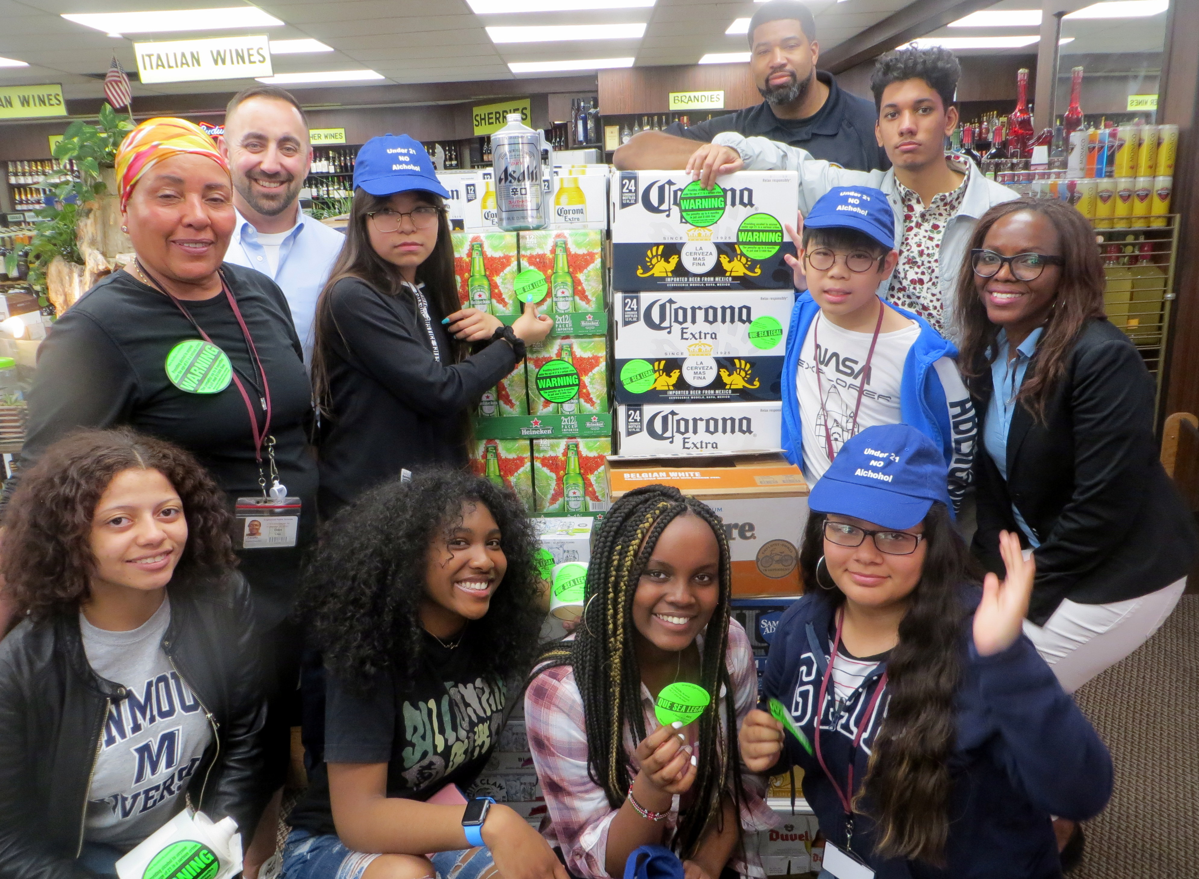 At each liquor store, the students donned hats that read, “Under 21. No Alcohol,” and they attached stickers and hangers to alcoholic beverages and products that appeal to minors, such as beer. They also put hangers on bottles of alcoholic products throughout the store to discourage adults and peers who are 21 or over from providing alcohol to minors.