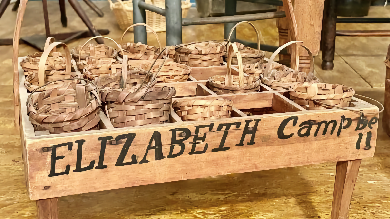 PARK RIDGE, N.J.—These charming strawberry baskets were owned by Elizabeth Campbell (1850-1931) during her childhood in Park Ridge. Years ago, Bergen County was famous for its strawberry harvests that were shipped by train, wagon, and boat for sale in New York and other cities. Note that an enthusiastic young Elizabeth had painted her first name prominently on the basket holder (called a hamper), only to realize she did not leave adequate space for her last name. It’s a miscalculation we all made as children.