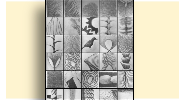 Strauss tells Pascack Press he draws with two perspectives in mind: “One started with a beach walk in Avon in the late autumn when the wind was blowing and I wanted to capture the wind in my drawing. The second starts with no preconceived notion and arrives where it will.”