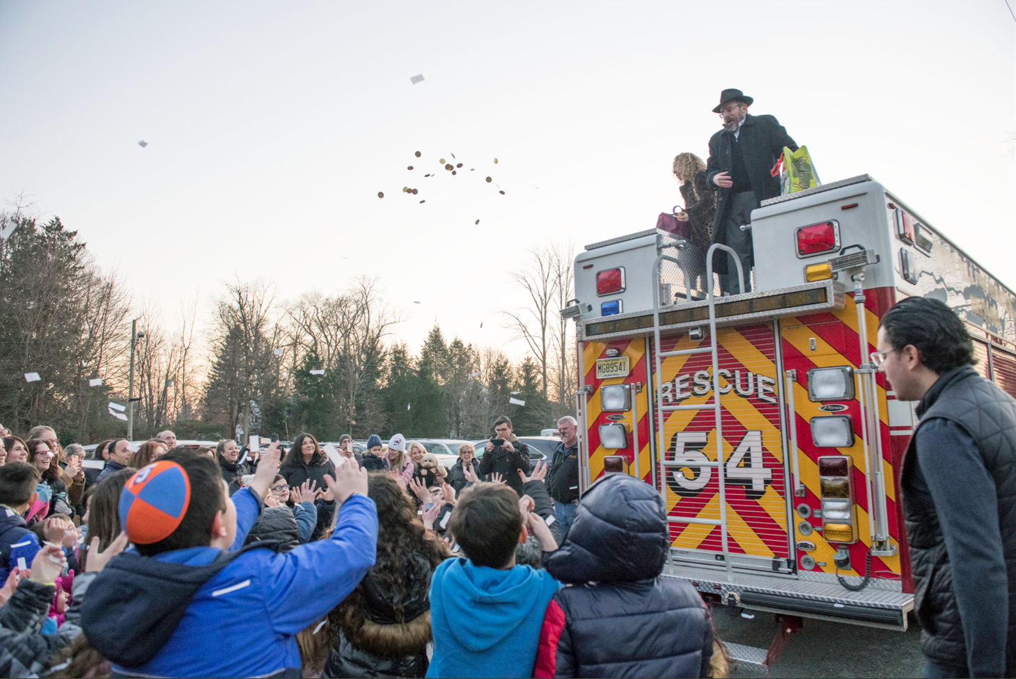 RIVER VALE, N.J.—The community Chanukah party and chocolate gelt drop delighted children of all ages on Sunday, Dec. 22. Special thanks went to the River Vale Fire Department for facilitating the drop.