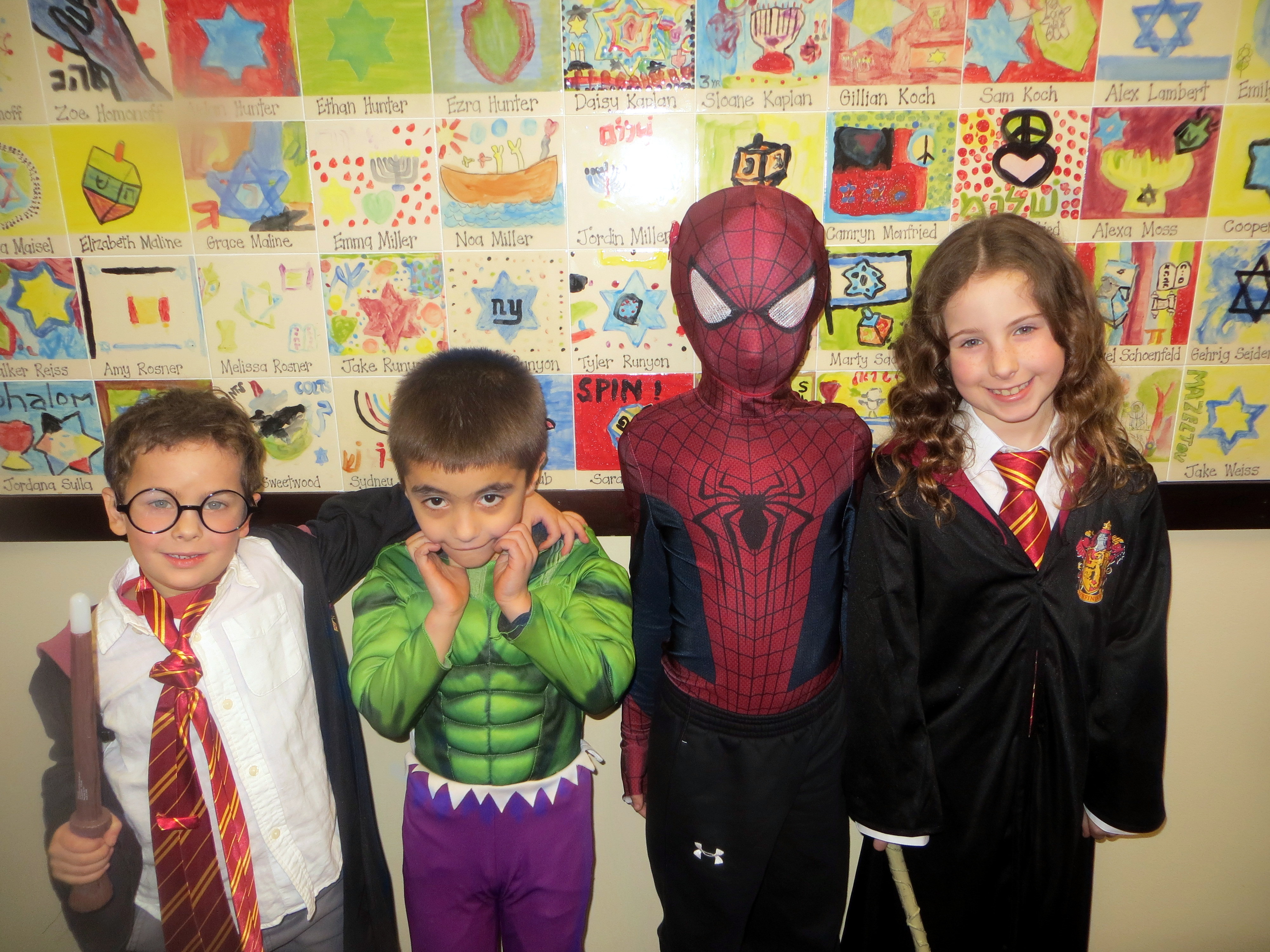 The parade of children and parents clad in festive costumes was joined by synagogue staff members who were also wearing fun and furry costumes – Rabbi David-Seth Kirshner; Associate Rabbi Alex Freedman; Cantor Israel Singer; Educational Director Adam Schwartzbard; Tamara Ween, the school’s youth and family program director; Naama Heymann, assistant principal; Christiina Buchert, religious school administrator; Julia Vazquez, administrative assistant; and Jeanine Corrubia, temple administrator.