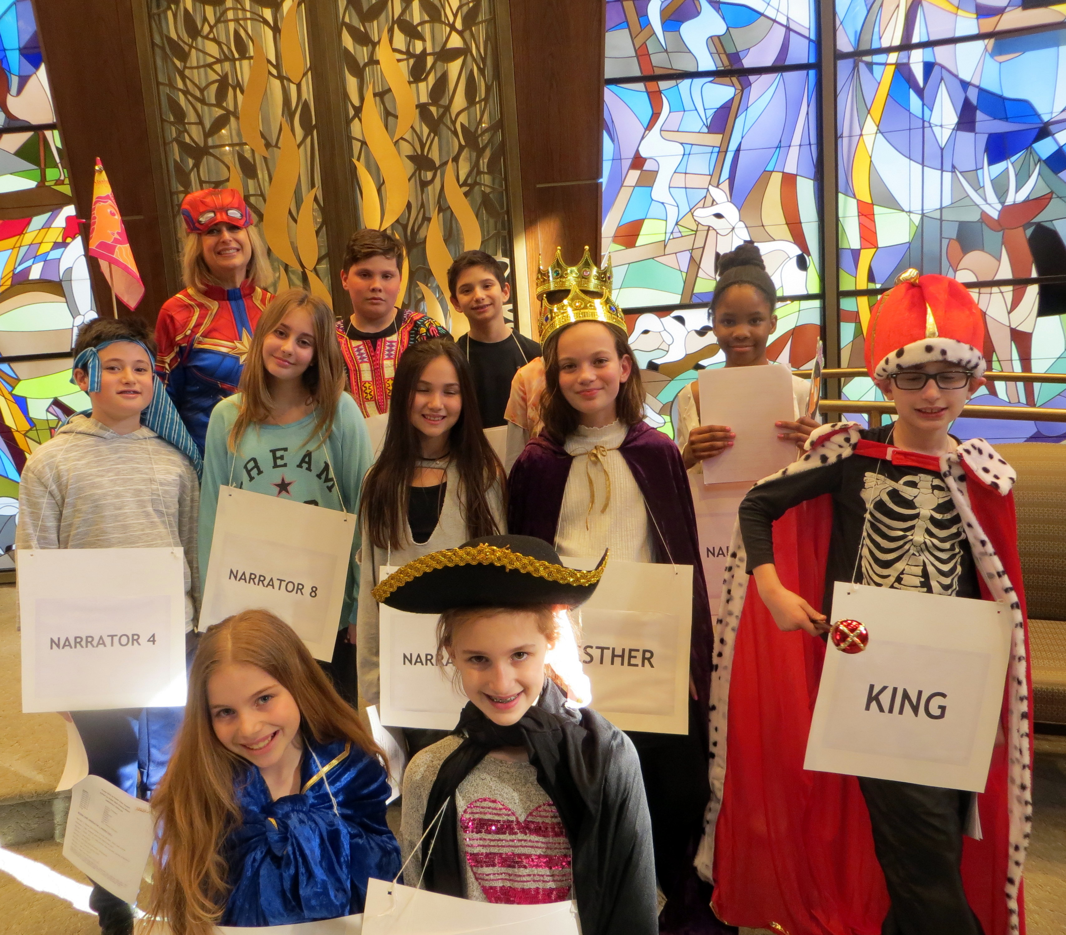 Dozens of children as well as parents and clergy and Board Members had a great time reenacting the Purim story and its customs at the temple in Tenafly.