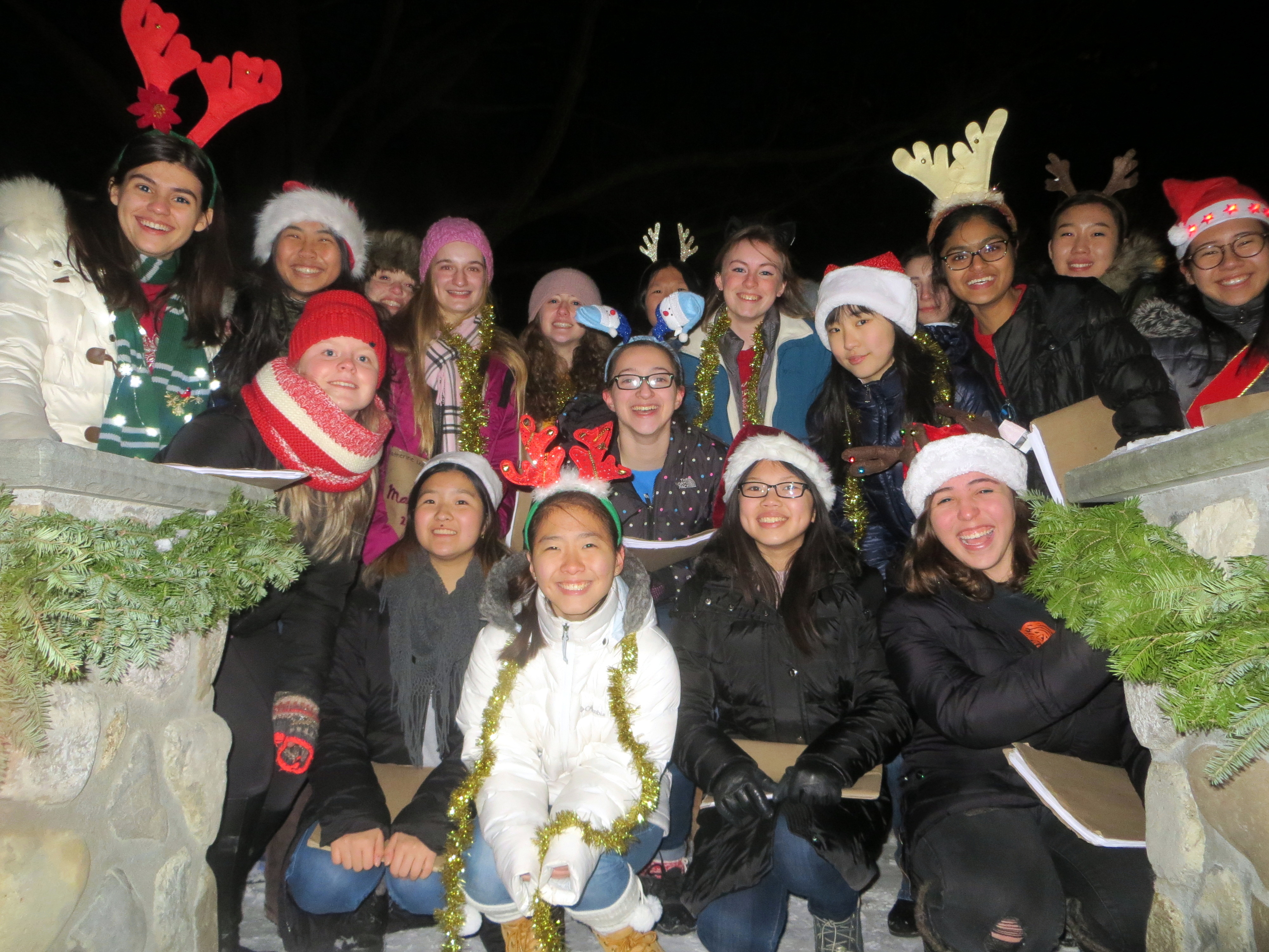 The first featured group was the Tenafly High School Madrigal Singers, a group of high-spirited teenagers sporting Santa caps and reindeer antlers. As they sang Christmas carols, the audience grew steadily and then began fanning out around the park.