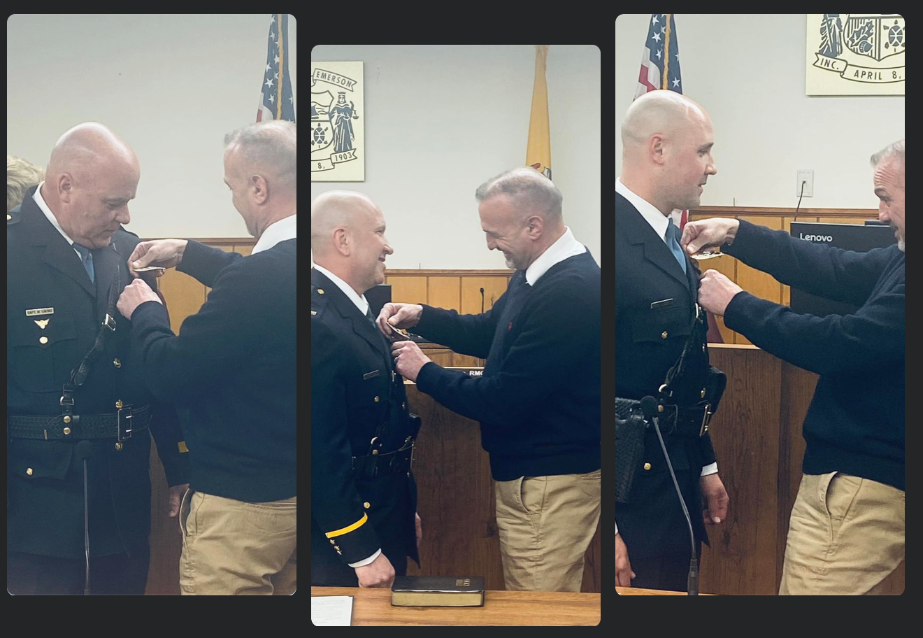 Sgt. Rocco Duardo, a 20-year Emerson Police veteran with six years of supervisory experience as a patrol sergeant, was sworn-in first.