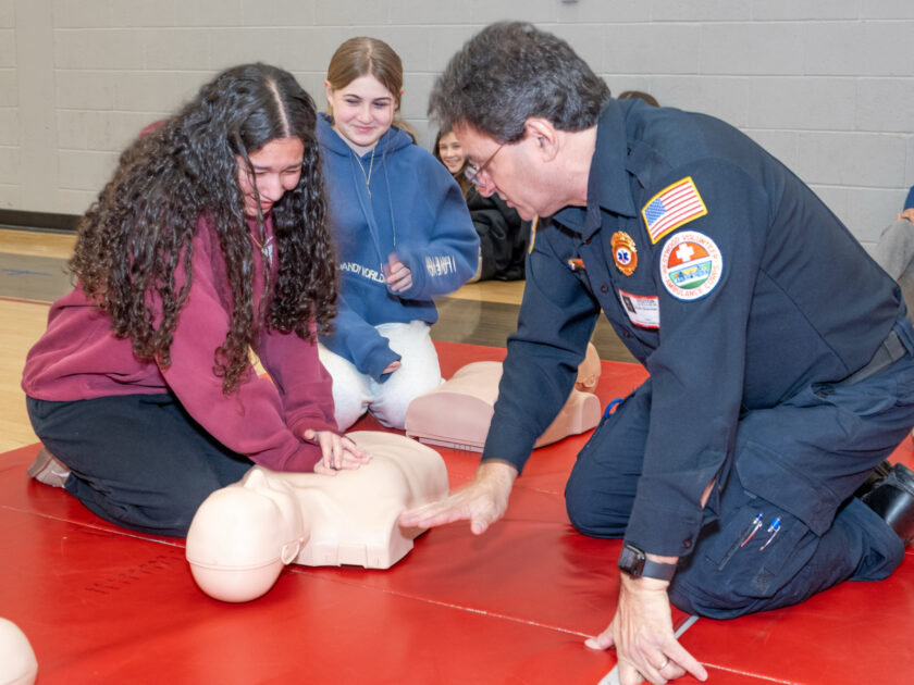 The program’s CPR component ran throughout the day, with students practicing hands-only CPR on training mannequins. (Hands-only is CPR without rescue breaths.) Organizers said the goal is for students to leave with enough skill and confidence to respond in an emergency.