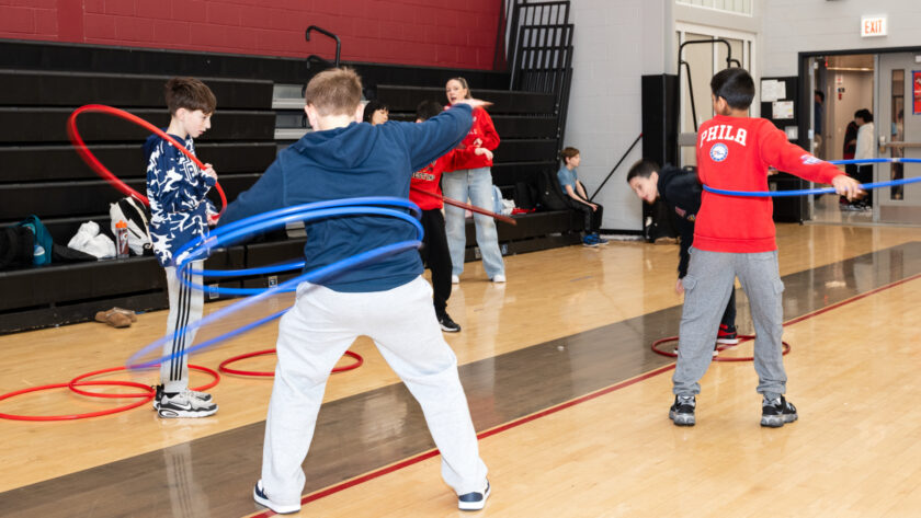 Another activity, with hula hoops, demonstrated circulation and oxygen delivery, with students linking arms and working together to move a “red blood cell” through a human “blood passageway,” illustrating how the body constantly moves oxygen throughout the system.