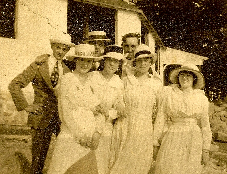 In the collection were a small group of pictures of men and women in straw hats, the women in white lawn dresses, looking like they were enjoying an outing. Two other small pictures showed a woman in a soft hat and a fur boa, who we decided must be Ethel because she resembled one of the women in the group. Besides, why else would she save these portraits?