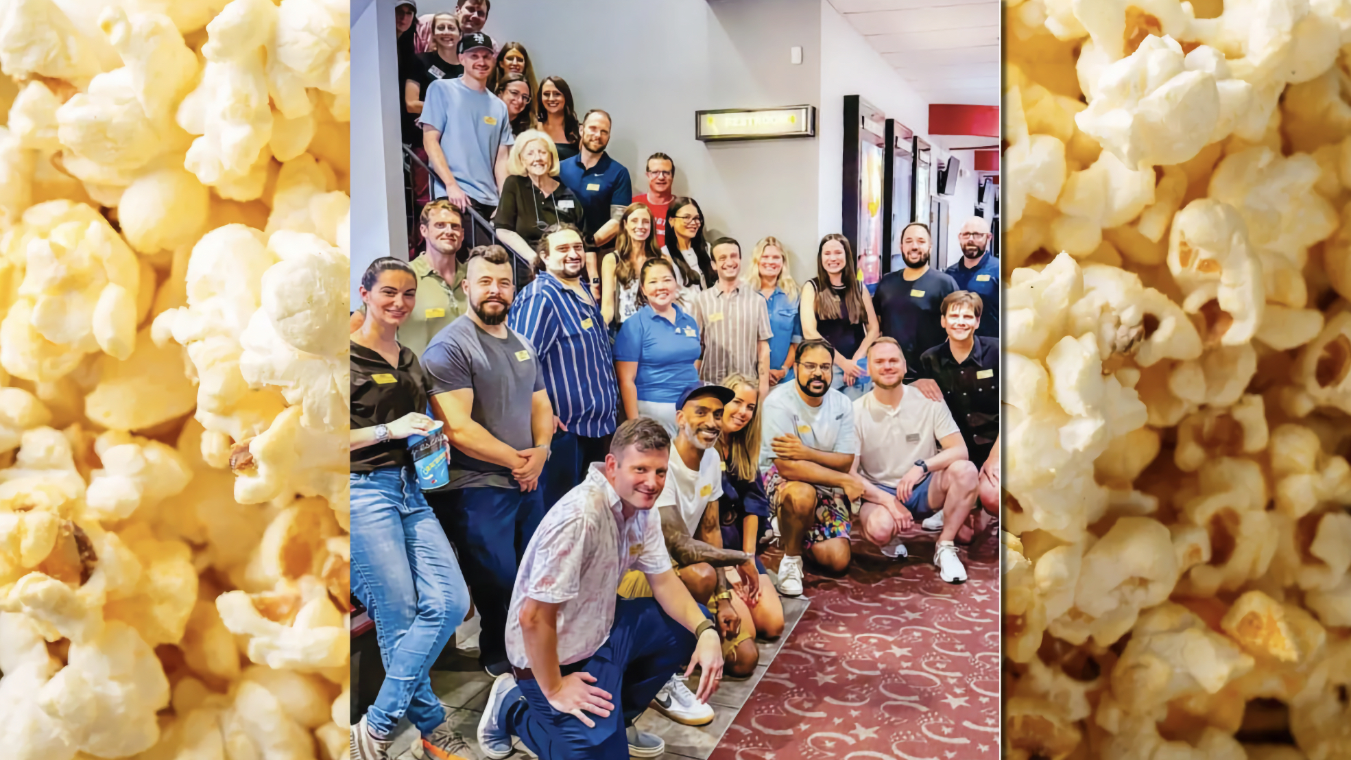Stills and camcorder-recorded home movie clips showed popcorn flying. Staff daring each other to drink condiments. Huge smiles. Plumbing mishaps. Costumes. Seasons. Styles. Dancing. Tomfoolery before, during, and well after feature presentations. All lovingly edited together on a period-perfect soundtrack.
