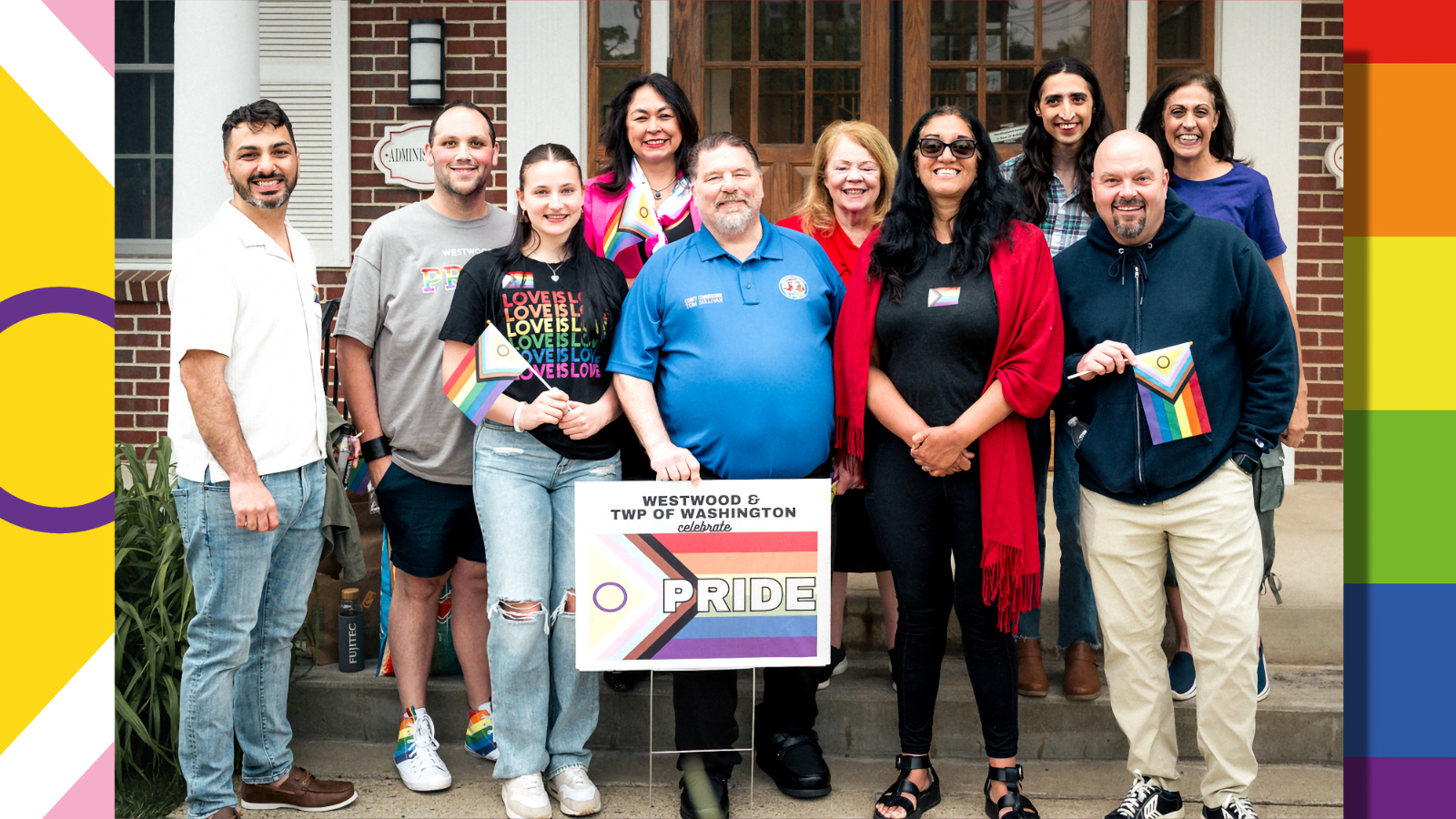 The event resonated with the LGBTQ+ community and allies from Westwood, the Township of Washington, and wider Bergen County, and came replete with Pride flags, stickers, and neckerchiefed dogs. Lending their support: members of the Bergen County Board of Commissioners and a representative of Rep. Josh Gottheimer’s office, who presented a certificate. The evening concluded with a benediction by Pastor Rodney Haveman of Parkside Community Church.