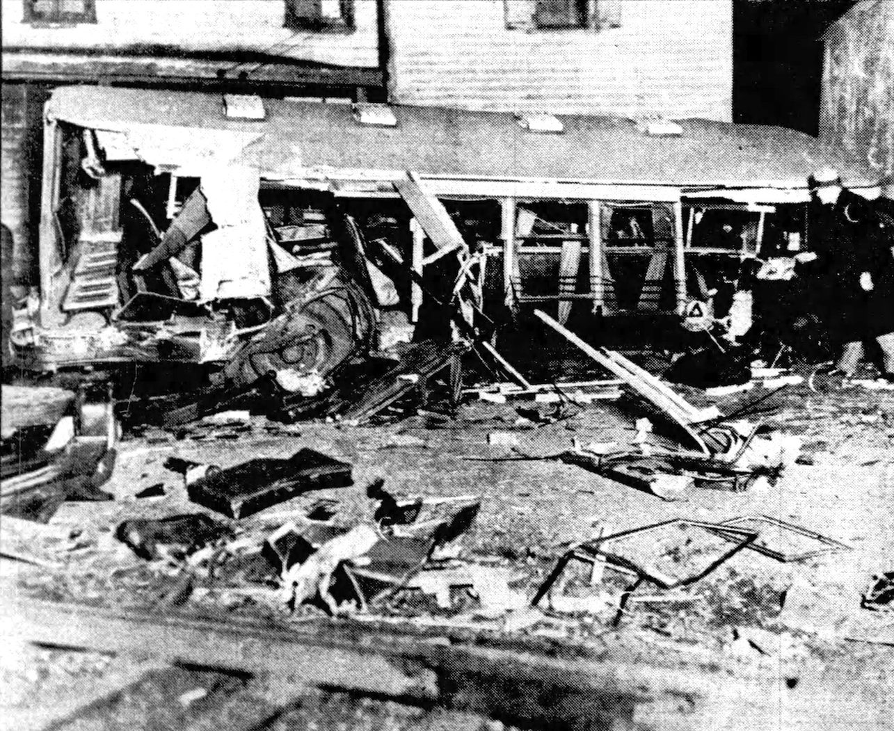 The bus was left a tangled wreck, with shrapnel dotting the rails from Main to High Street. The train crew jumped down and ran back to the bus, where a police patrolman was already trying to extricate the injured and panic-stricken passengers. Hundemann was killed in the crash and seven other people were injured, three of whom were unconscious.