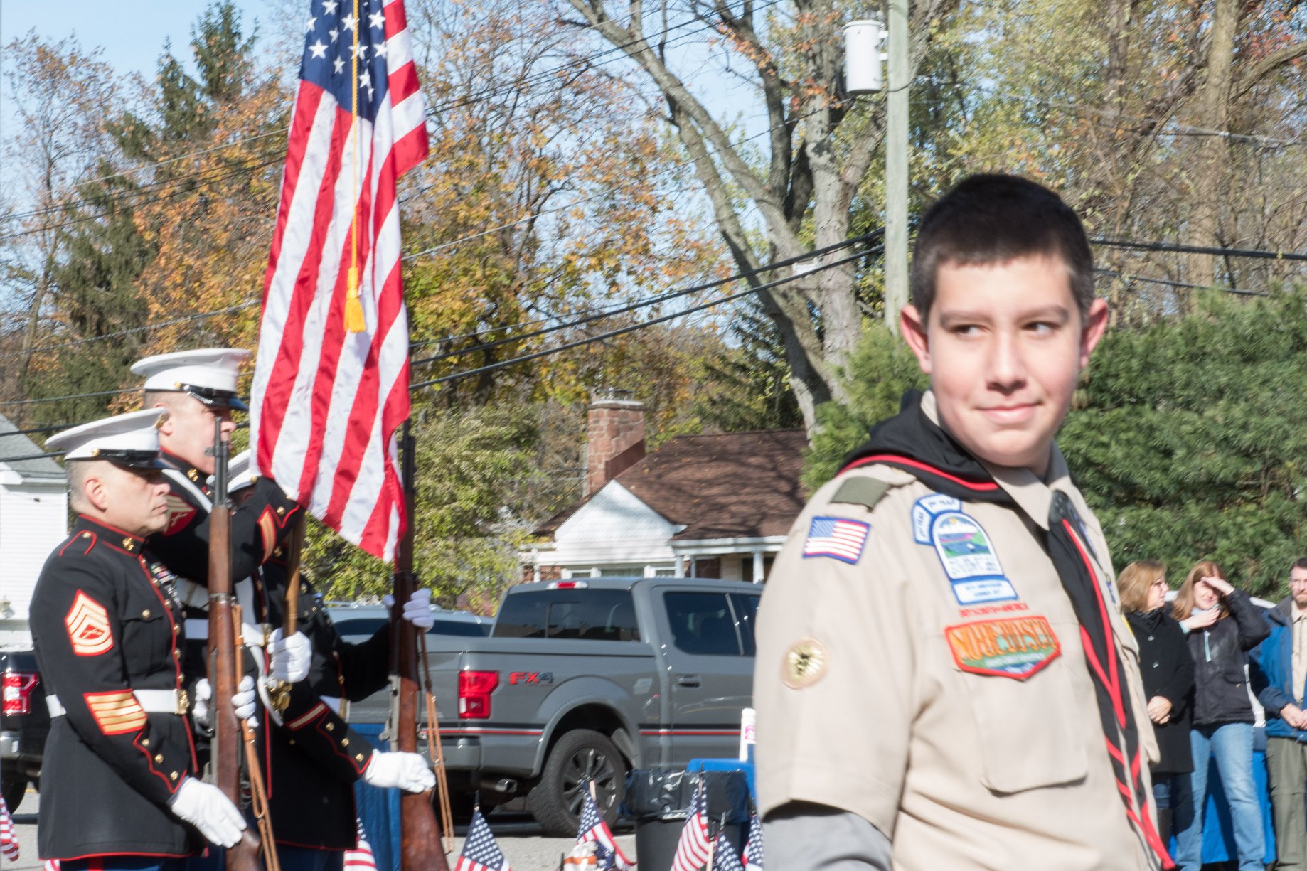An estimated 250 people attended the dedication for the township’s largest veterans memorial, on Saturday, Nov. 9, with Life Scout James Stickel emceeing a program that he made possible.