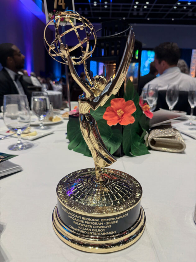 Gilroy’s newest Emmy came for “Saltwater Cowboys,” filmed on working boats along both Florida’s Gulf Coast and Atlantic Ocean. He worked as a key production assistant, DIT (digital imaging technician), and post-production supervisor, supporting the series both on location and in the editing workflow.