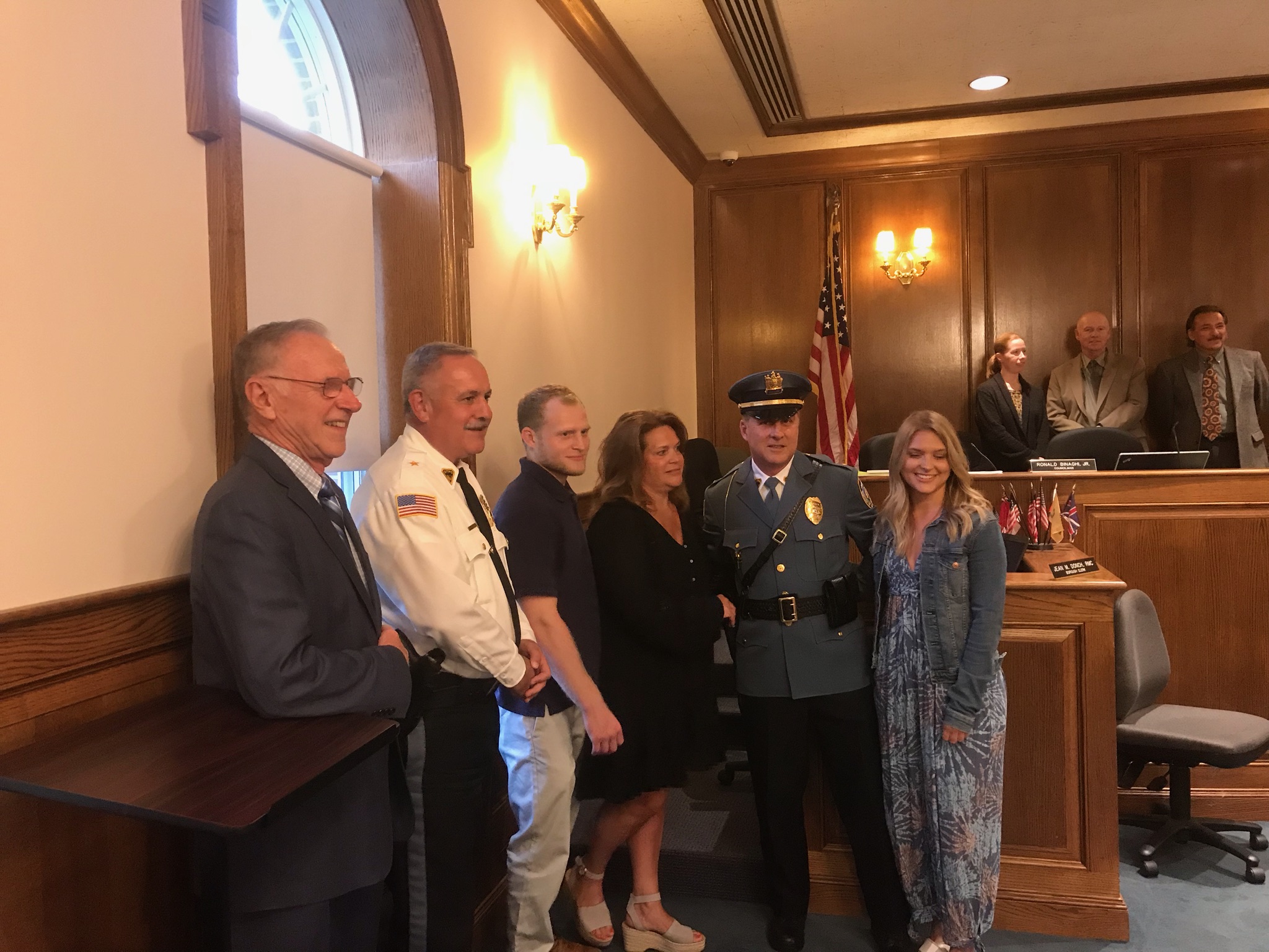 OLD TAPPAN, N.J.—Dozens of friends, family and fellow officers—including officers from nearby towns—offered congratulations for newly sworn-in Old Tappan Police Department Capt. Joseph Tracy at the June 17 Borough Council meeting.