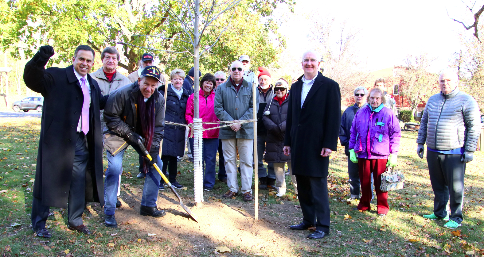 Smart explained that these trees “represent and celebrate friendship between the towns, along with strength and beauty that grows over time.” Since the ceremony also took place on Veterans Day, he pointed out that the boroughs’ veterans have provided a gift of freedom in these communities where residents can live out their dreams. “I give thanks twice for the tree and for the veterans who made these blessings possible,” said Smart.