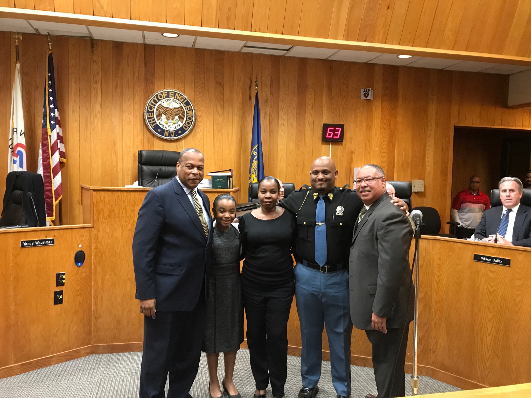 ENGLEWOOD, N.J. –– Two Englewood police officers received promotions to detective at the Oct. 17 council meeting as Police Chief Lawrence Suffern noted the officers “were working above and beyond the normal call of duty” in previous law enforcement assignments.