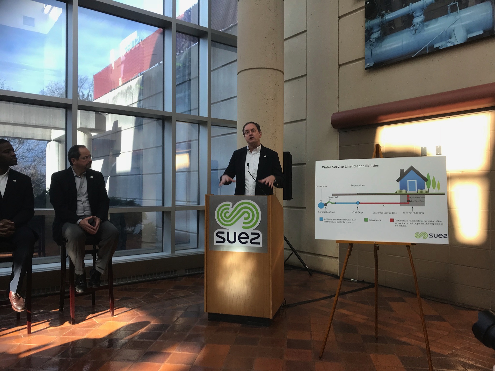 After 16 of 108 homes served by Suez-owned lead water lines tested above federal standards for lead in drinking water, Suez officials held a news conference Jan. 16 offering customers assistance to help address questions about potential water quality concerns.
