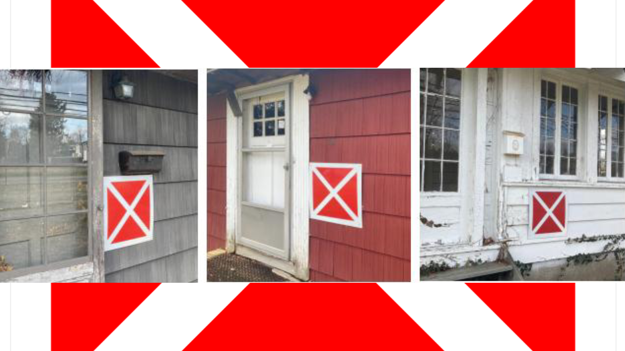 While traveling via car on Washington Avenue heading east, a Pascack Press reporter observed that at least three of the homes had a large “X” in red and white covering the entryways, several broken windows, and what appeared to be ivy overtaking one entryway.