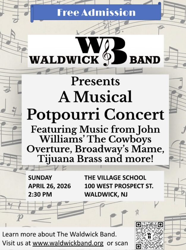 PASCACK VALLEY—The Waldwick Band will conclude its 2025–26 indoor concert season with a free performance at 2:30 p.m. Sunday, April 26, in the auditorium of the Village School, 100 W. Prospect St.