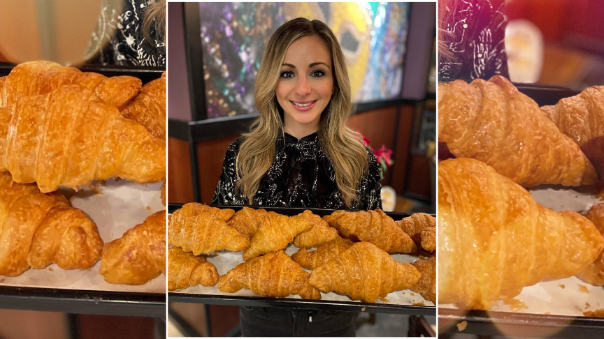 Jule Hazou and staff make their croissants in-house, from scratch, in small batches every day with the best of ingredients: King Arthur never bleached, never bromated, Non-GMO Project-verified flour, European-style butter, and cage-free eggs.