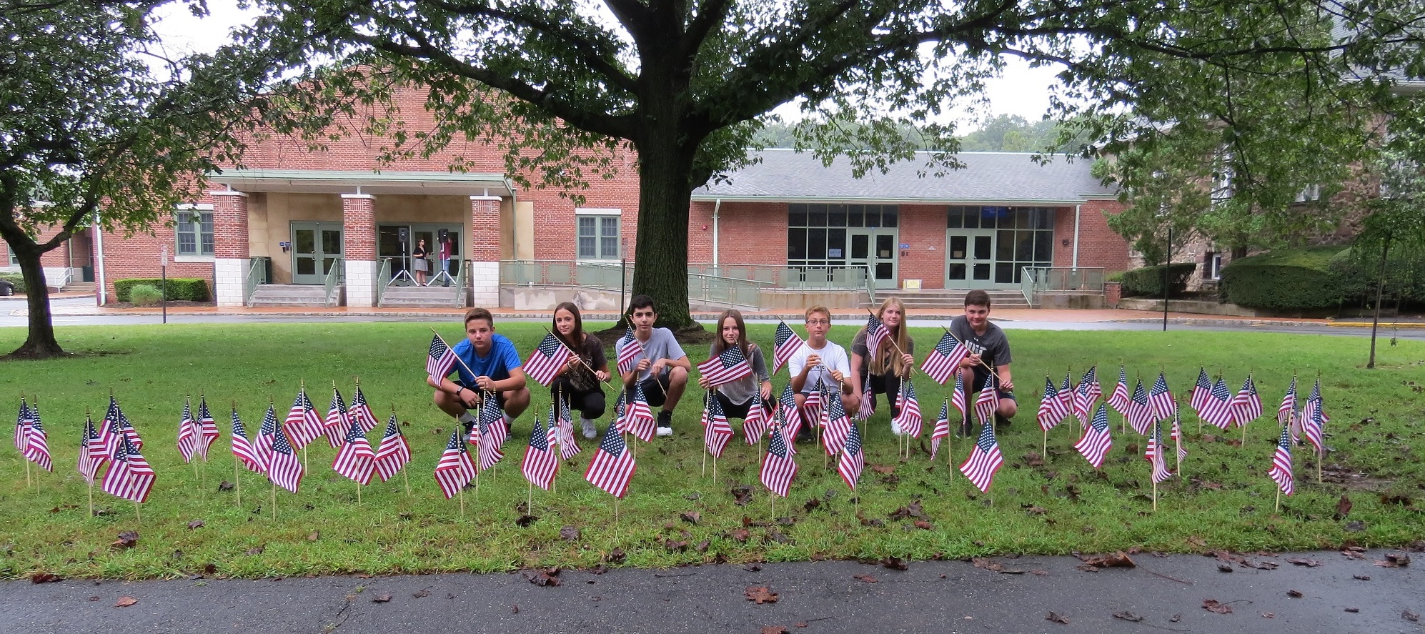 Woodcliff Lake Middle School remembered the victims with a Remembrance and Service Ceremony. Leading up to the event, the 8th grade class honored Bergen County’s victims by writing their names on the sticks bearing small American flags, which they sank into school grounds.