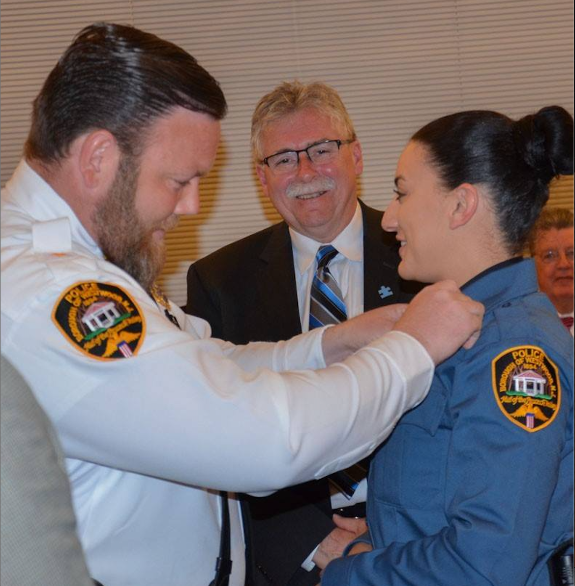WESTWOOD, N.J.—The Westwood Police Department, Police Chief Michael R. Pontillo, and the mayor and council welcomed the borough’s newest police officer to the department’s ranks at a ceremony at the Municipal Complex on April 16.