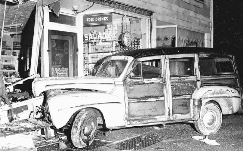 In what the Westwood News dubbed a freak accident, a woodie station wagon went off the road and plowed into the store at around 3 a.m. on Oct. 15, 1955. The driver was a 19-year-old from Hackensack, and his passenger was an 18-year-old from the same town. The River Vale police issued a summons for reckless driving. The boys sustained only scrapes and bruises.
